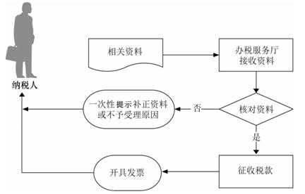 (1)办税服务厅接收资料,核对纳税人报送资料是否齐全、是否符合法定形式、填写内容是否完整,符合的即时办结;不符合的当场一次性提示纳税人应补正资料或不予受理原因。